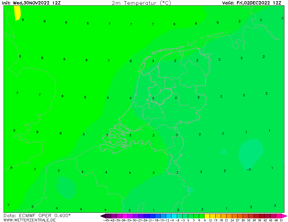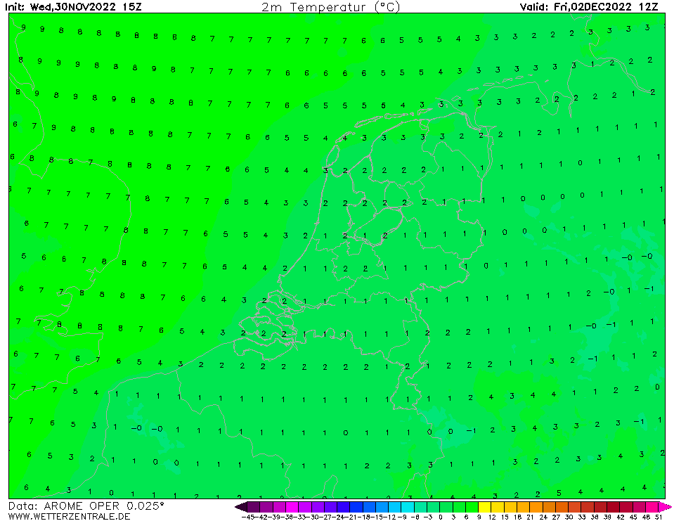ECMWF en GFS (globale modellen) zijn voor vrijdagmiddag al zachter dan de fijnmazige modellen (HARMONIE en AROME).