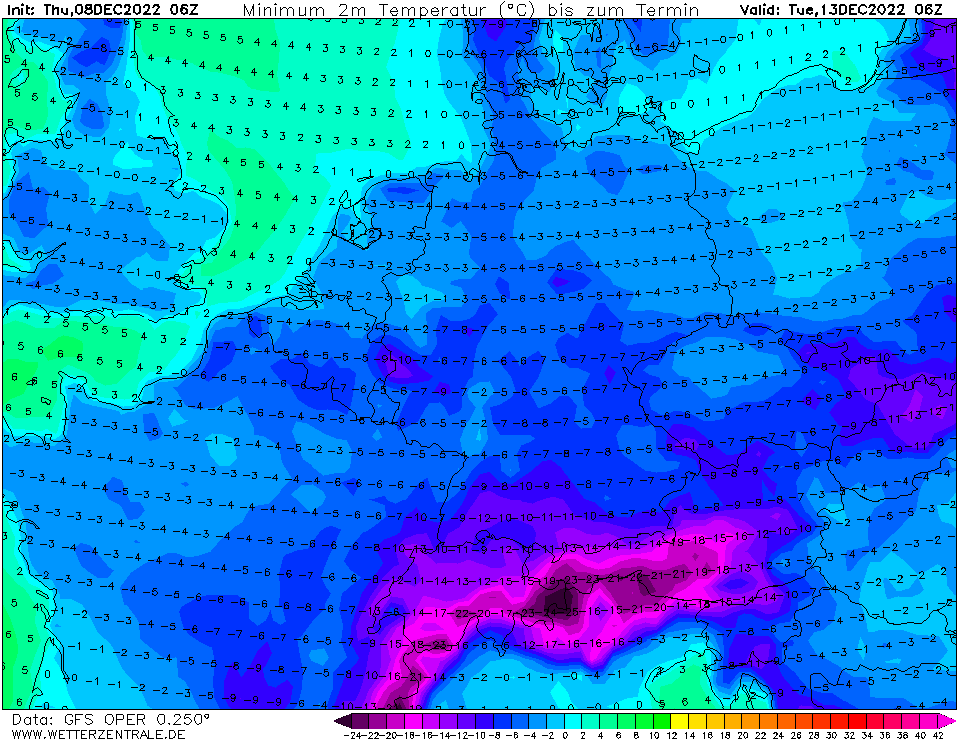 Brede opklaringen, amper wind. Dan zit GFS veel te hoog met de minimumtemperaturen.