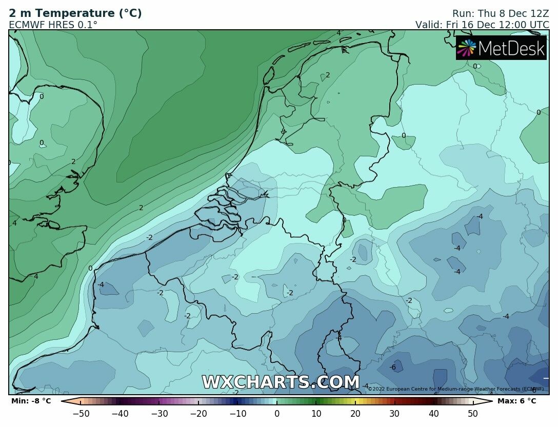 Regionaal weer een ijsdag. Weinig wind, koude voorgeschiedenis, koude bovenlucht. Wel een fragiele setting natuurlijk. Één keer een laagje eroverheen en het is weg.