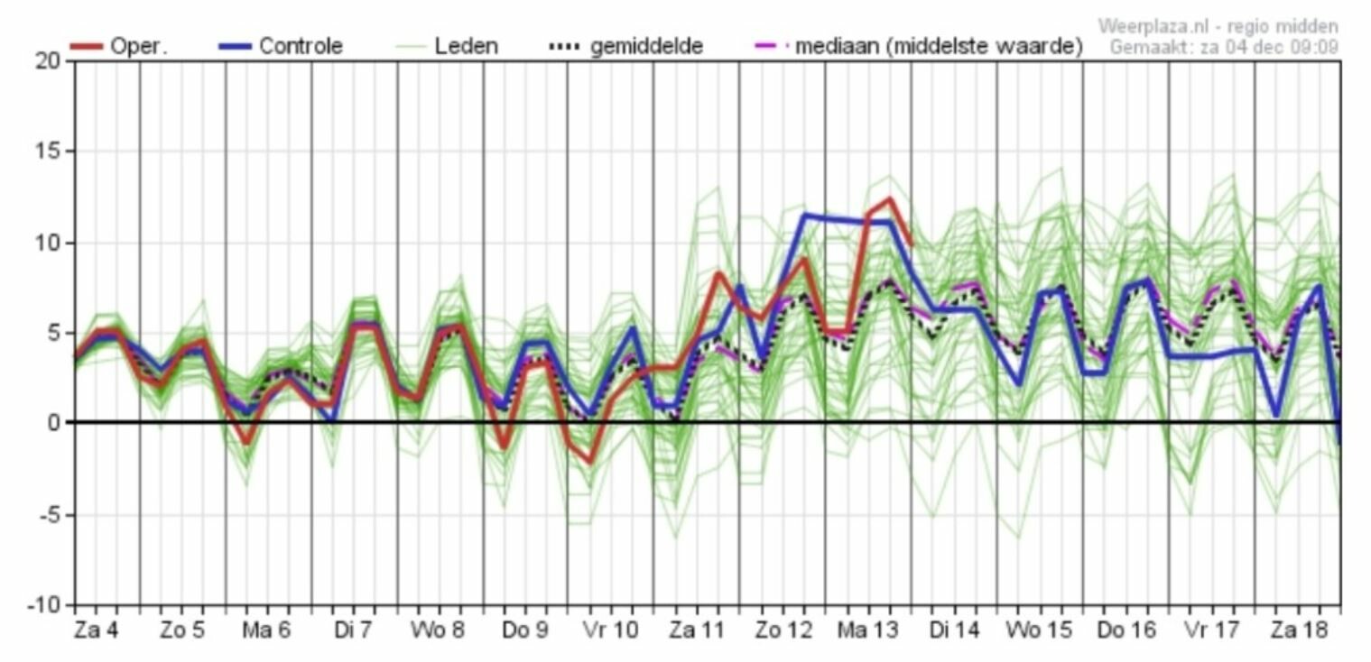 Het gemiddelde voor woensdagochtend lijkt wat hoger