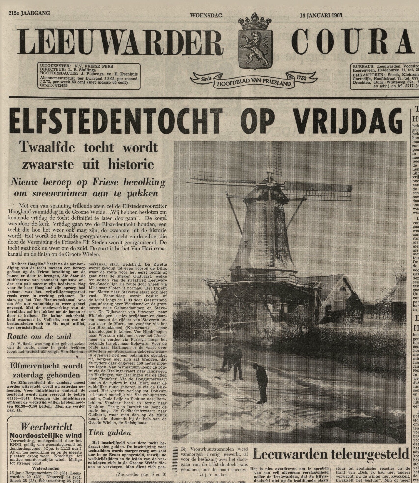 Het weer leverde de grootst mogelijke uitdaging voor de deelnemers aan en de organisatie van de twaalfde editie van de Elfstedentocht op 18 januari 1963. Er zijn boeken over volgeschreven, niet in het minst omdat het één van de zwaarste, zo niet de zwaarste, van alle Elfstedentochten is geweest (Zie kader: Barre tochten). Voor mij als 16-jarige plezierschaatser op Friese doorlopers scheen de Elfstedentocht sowieso al een monstertocht voor heel sterke schaatsers. Een beeld overigens dat in de jaren 80 wel grondig werd bijgesteld. Bij voorbaat was die tocht voor mij al een onmogelijke opgave en de bewondering voor die mannen die de tocht in een uur of 11 à 12 volbrachten was groot. Wat zich in de rest van de grote groep schaatsers afspeelde is mij in eerste instantie ontgaan.