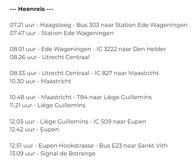 Ik heb - als ik alle aansluitingen haal - 3,5 uur...