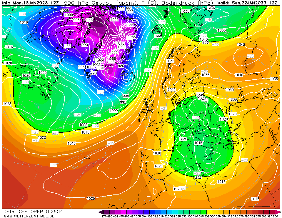 Komend weekend komt het warmtefront niet door. Daarna beetje rommelig met opnieuw hogedrukopbouw. Denk beetje grijs en rustig weer met wat stralingsvorst bij opklaringen.