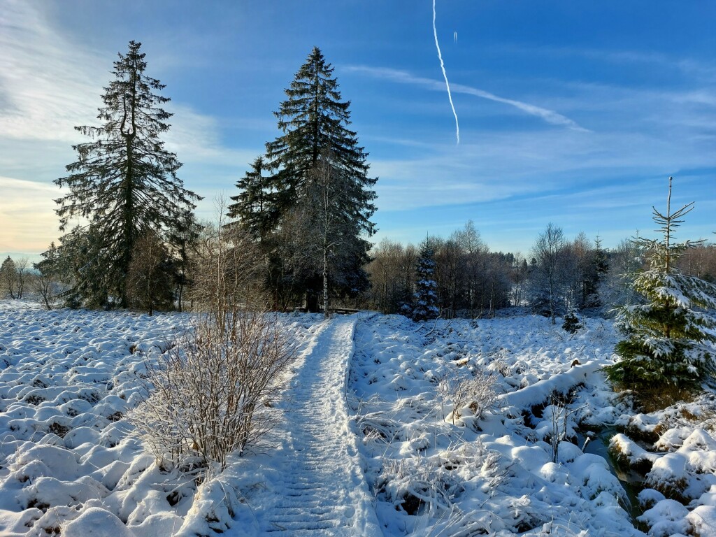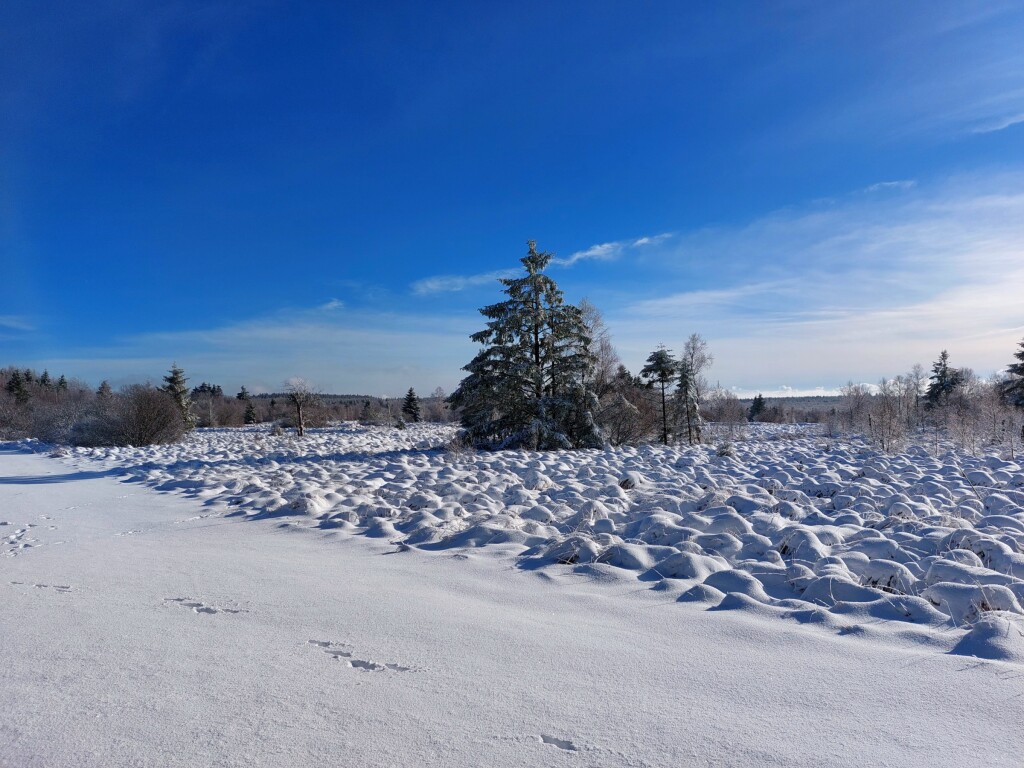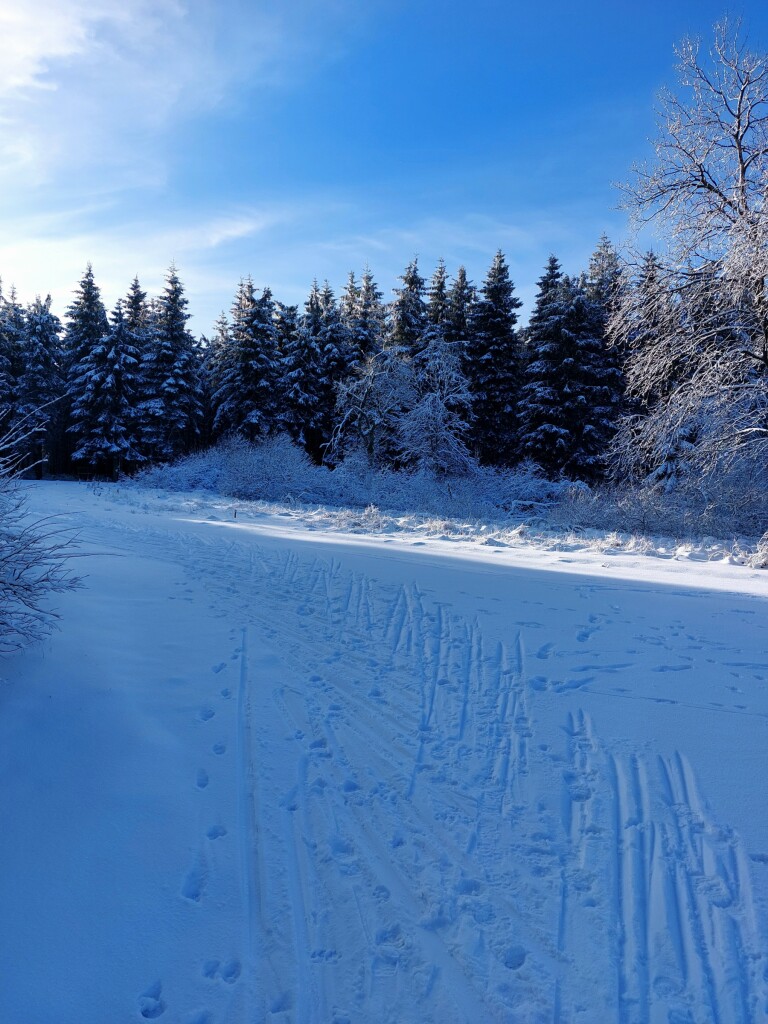 Het was de (lange) reis zeker waard. Het duurde vrij lang (lees: pas op serieuze hoogte) voordat de eerste sneeuw verscheen, maar toen ging het vrij snel. Over de gehele lengte van de wandeling was de sneeuwhoogte tussen grofweg 10 en 15 cm. Zeker op plekken met schaduw bleef de sneeuw ook de hele dag op takken en bladeren liggen, maar op stukken die gevoelig waren voor de zon merkte je wel duidelijk dat de sneeuw van de takken afviel. Het was - met uitzondering van het kleine rondje bij Mont Rigi - eigenlijk helemaal niet druk. Het was verder ook prachtig weer met eerst nog strakblauwe luchten, in de namiddag trok wat hogere bewolking binnen. De wind stelde niet veel voor en met het zonnetje erbij kon je soms zelfs met je jas deels open wandelen, terwijl de temperaturen rond het vriespunt lagen.