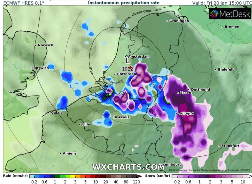 Dat staat voor vrijdag op de agenda. Minder aanlandige wind, dus minder dooi tijdens de neerslag.