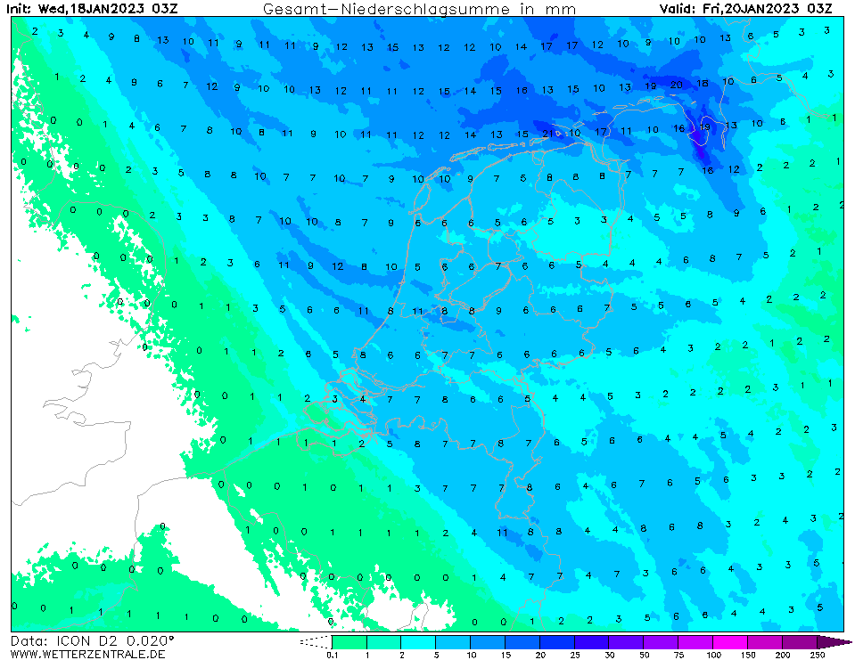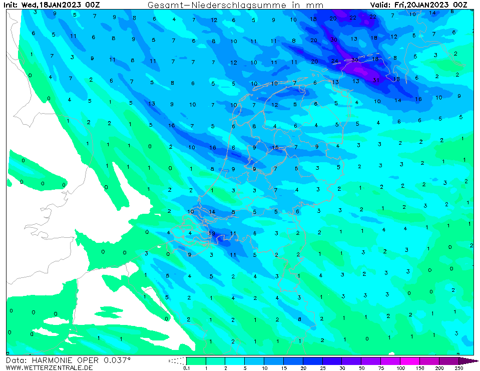 Noemenswaardig is dat er opnieuw op grote schaal 10-15 mm neerslag gaat vallen. Lokaal 20-30 mm onder een buientrein. Gaan we hier richting de 200 mm deze maand?