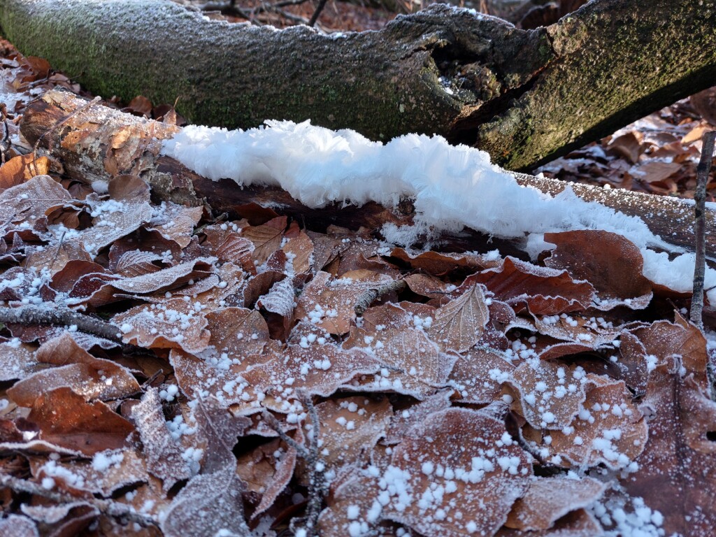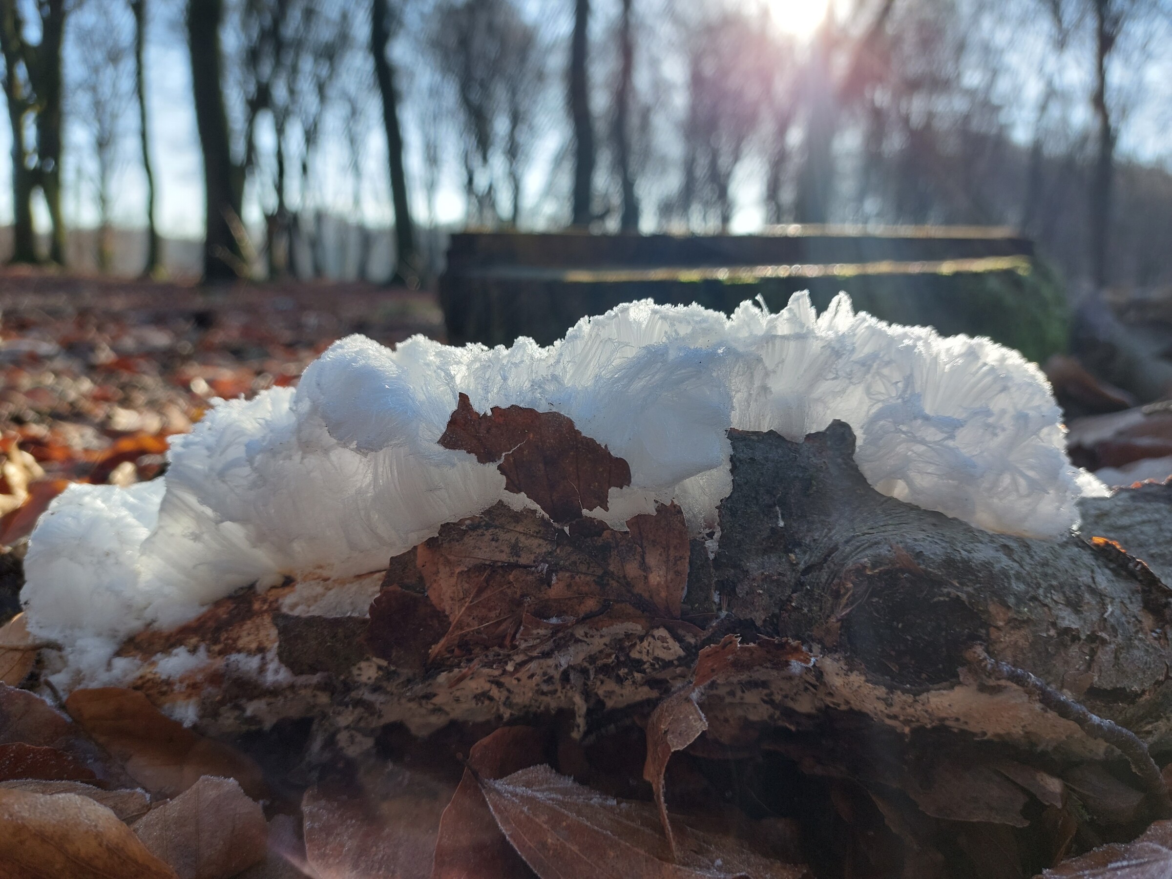In het Elspeterbos ook prachtig. De combinatie van rijp, ijshaar en de korrelsneeuw van gister geeft toch een heerlijk wintersfeertje vandaag. Natuurlijk, het kan veel meer maar het was al genieten.