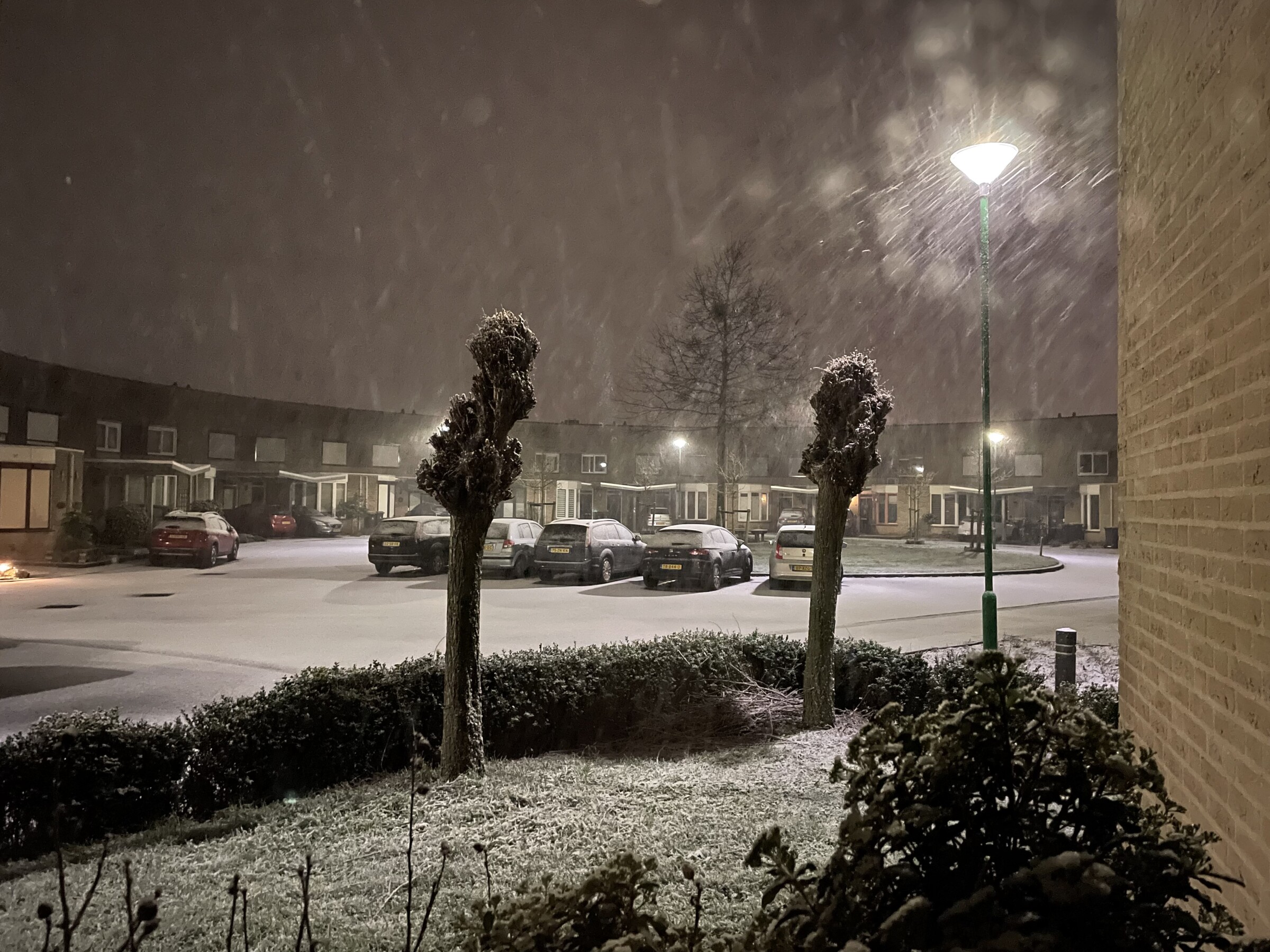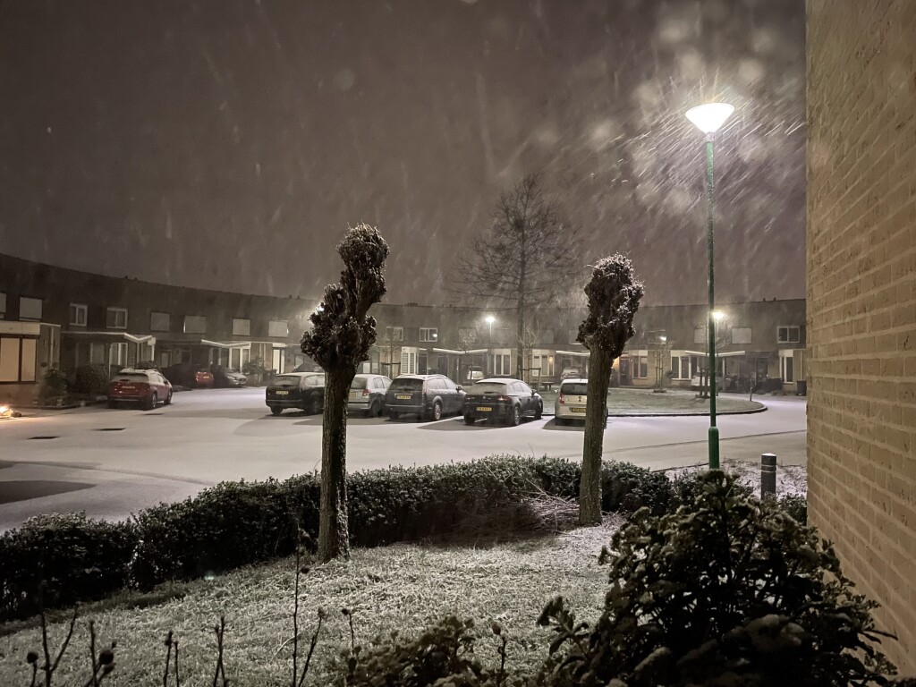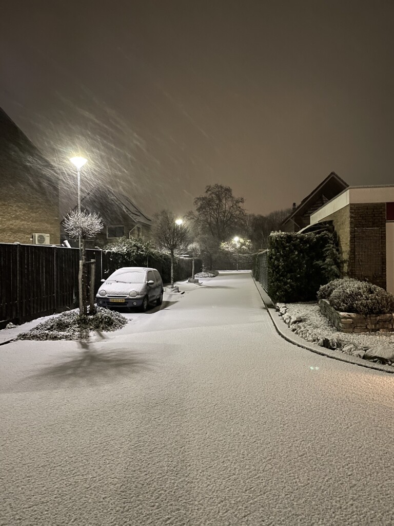 Het is mooi wit in Veghel., denk 1 cm ongeveer. Tact 0.4C.