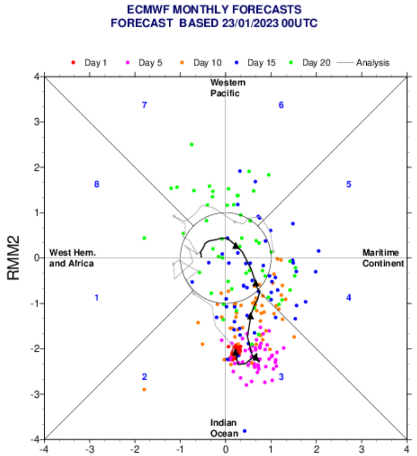 De MJO bevindt zich in fase 3.