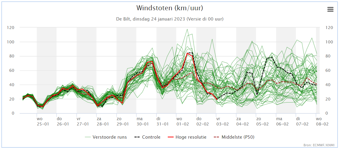 Vanaf maandag dan ook weer beduidend meer wind. Maakt het er niet aangenamer op.