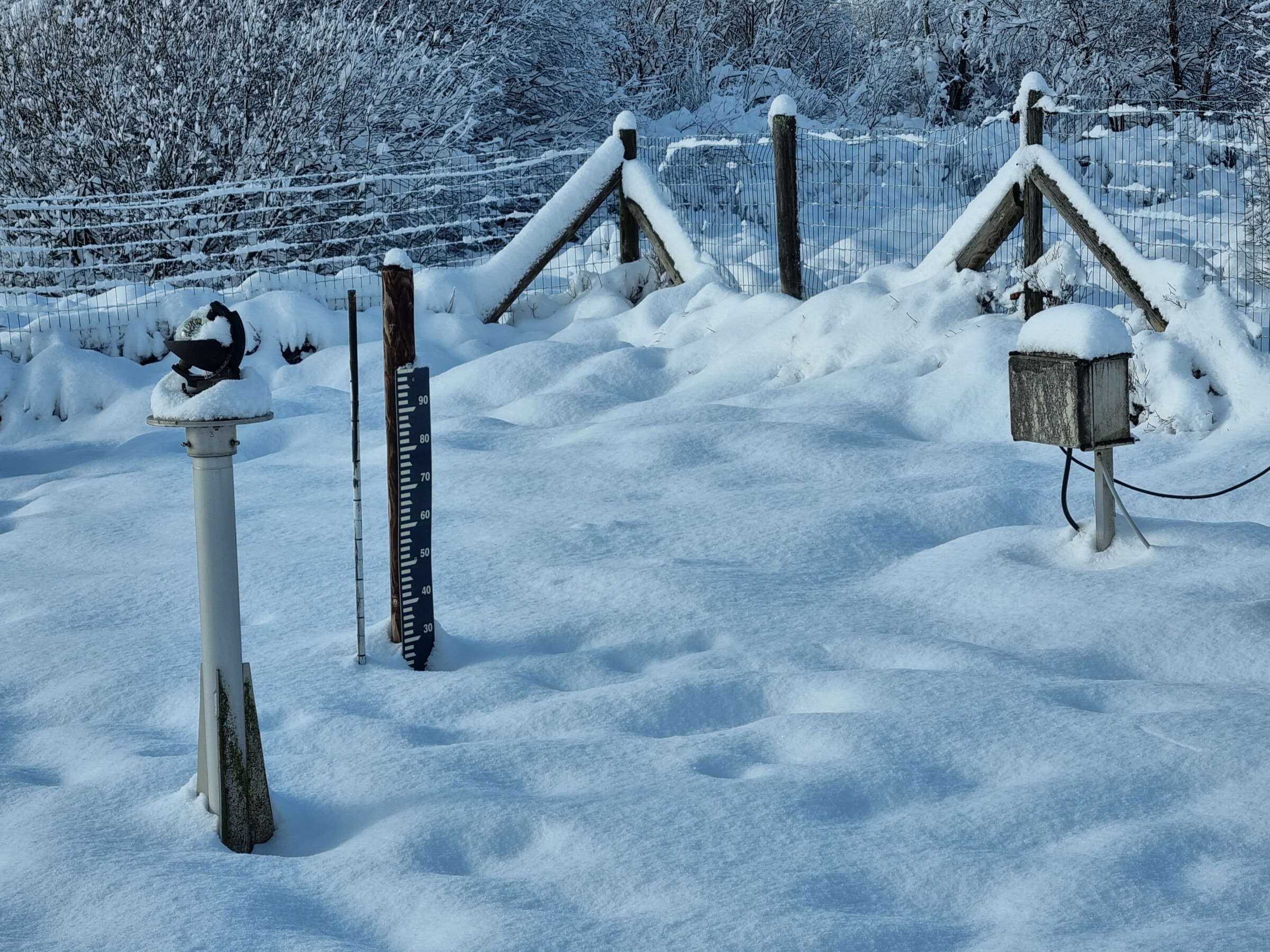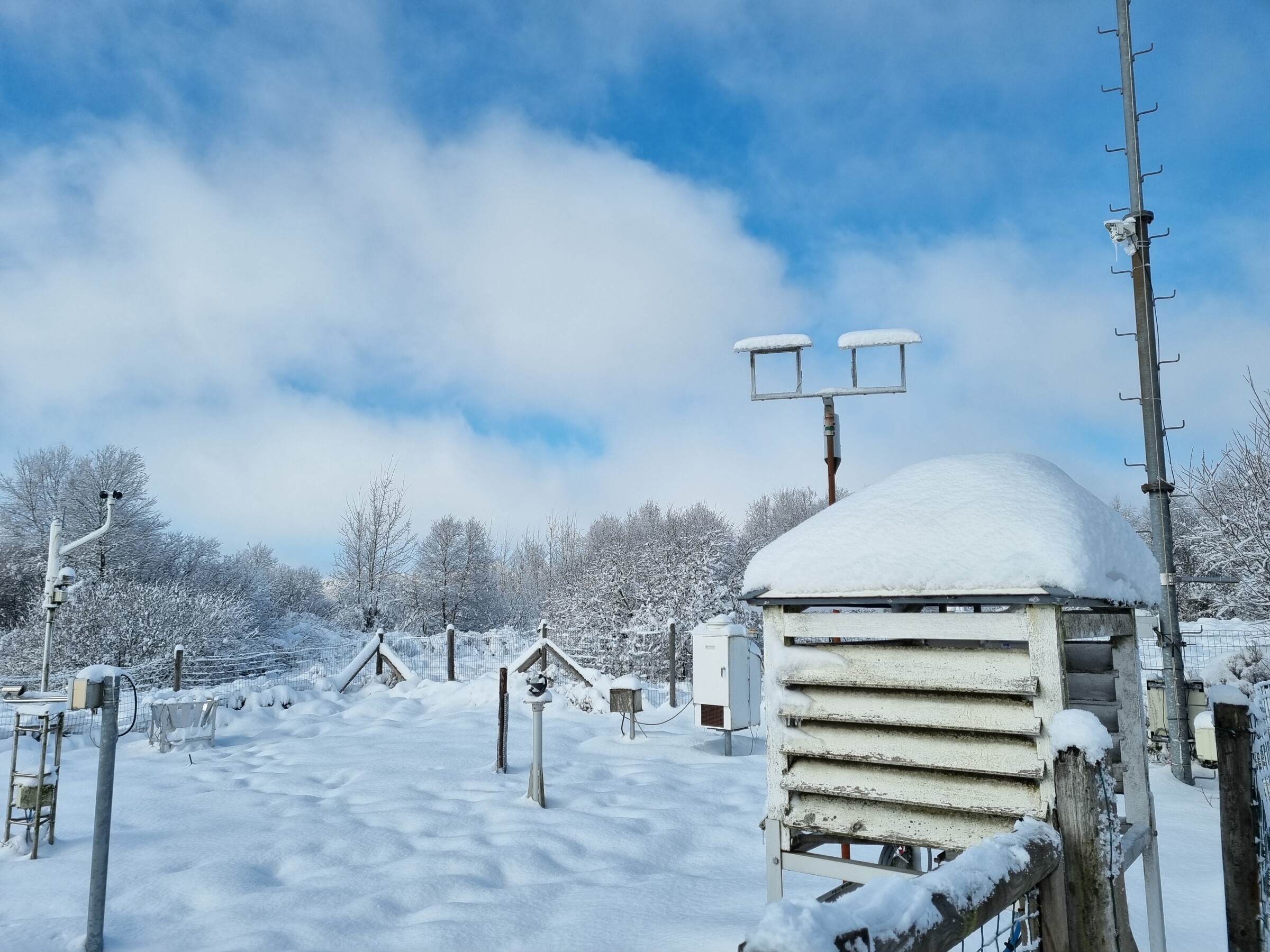 Na de meeste KNMI-stations in Nederland te hebben gezien, wordt het tijd voor de buitenlandse. Afgelopen zaterdag bij een bezoek aan de Ardennen liep ik het weerstation van Mont-Rigi tegen het lijf. Opvallend veel meetinstrumenten stonden er. Volgens mij alles in tweevoud. Natuurlijk stond er ook de bekende sneeuwlat en de webcam.