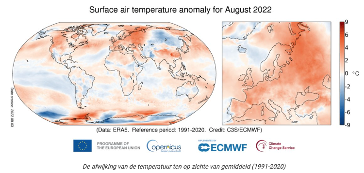 Als voorbeeld hieronder de anomalieën voor augustus 2022. Hier is de verdeling alvast meer afwijkend te noemen. Bespreek je dergelijke anomalieën voor het volledige jaar 2022? De som ligt in ieder geval wellicht rond +1,2° (maar dat interesseert me even niet).