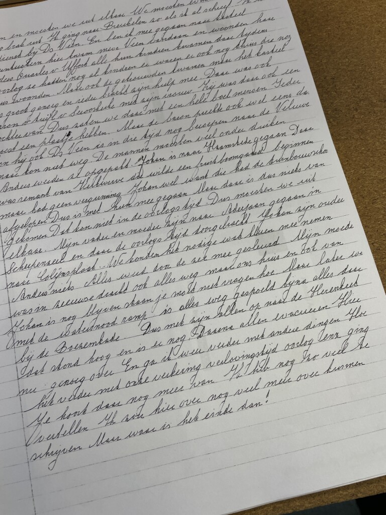 “We konden het nodige, enkel wat kleren, meenemen, anders niets. Alles werd door de zee mee gesleurd. Mijn moeder was in Zeeuwse dracht, ook alles weg, maar ons huis en ook van Johan is nog blijven staan. Je moet niet vragen hoe.(&hellip