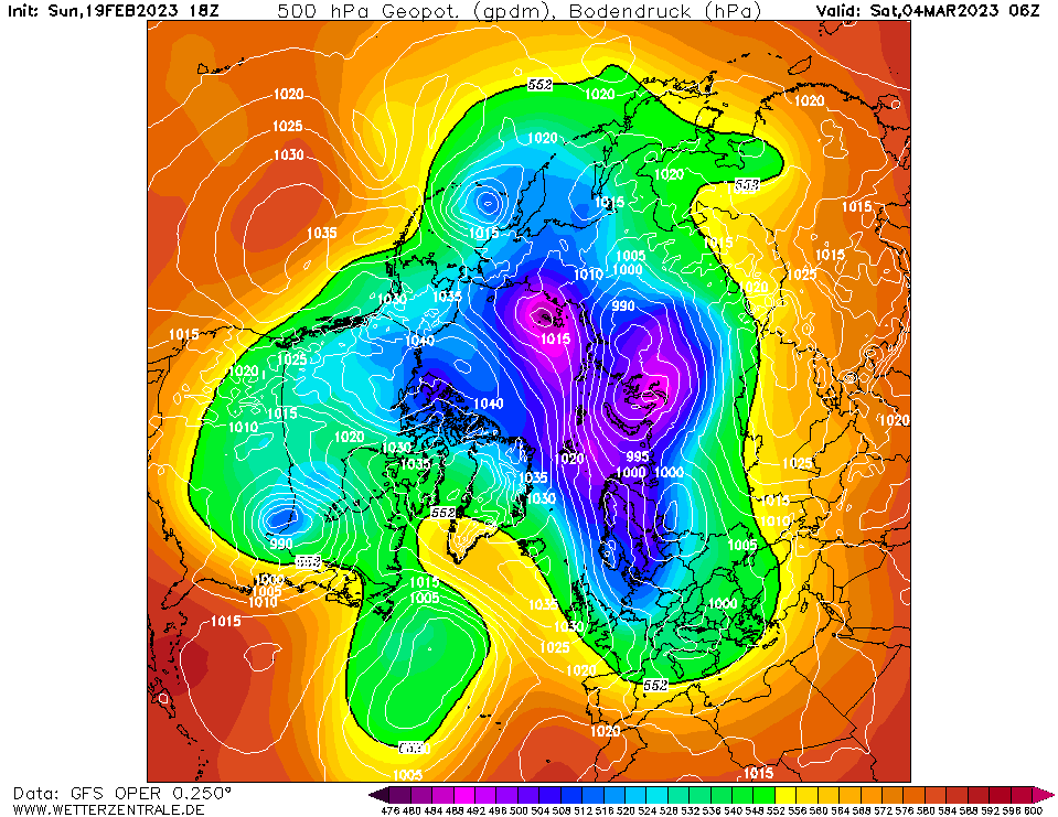 Begin maart is het kruispunt daar, of mild ZW of koud N