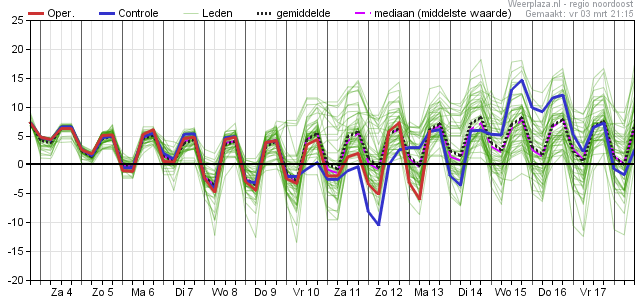 Toch wel behoorlijk koud met in de meeste nachten vorst en overdag nauwelijks boven de 5 graden tot aan het eind van de pluim.