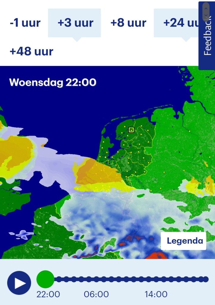 Als ik de neerslag zone zo zie, komt het geheel nog wat noordelijker uit dan verwacht. Op de bewegende beelden is dat uiteraard beter te zien. Wellicht wat lichte neerslag, maar is ook welkom.