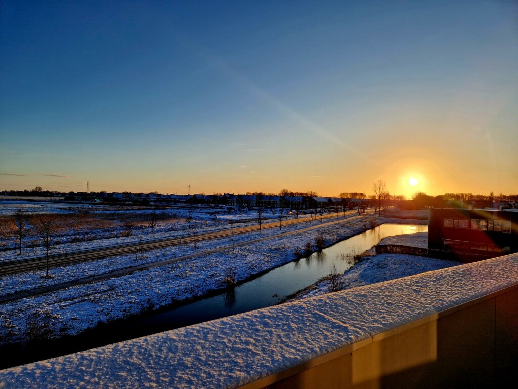 Een mooie witte wereld en een mooie zonsopkomst vanmorgen!