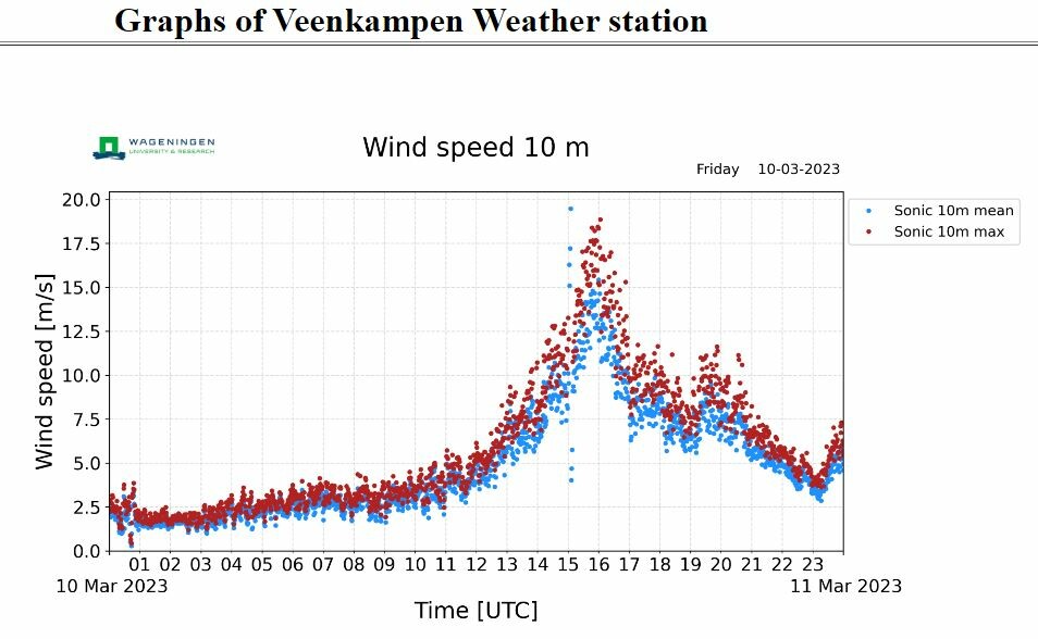 Bijgaand de windmeting van Wageningen-Veenkampen (de meting om 15 UTC is uiteraard foutief).