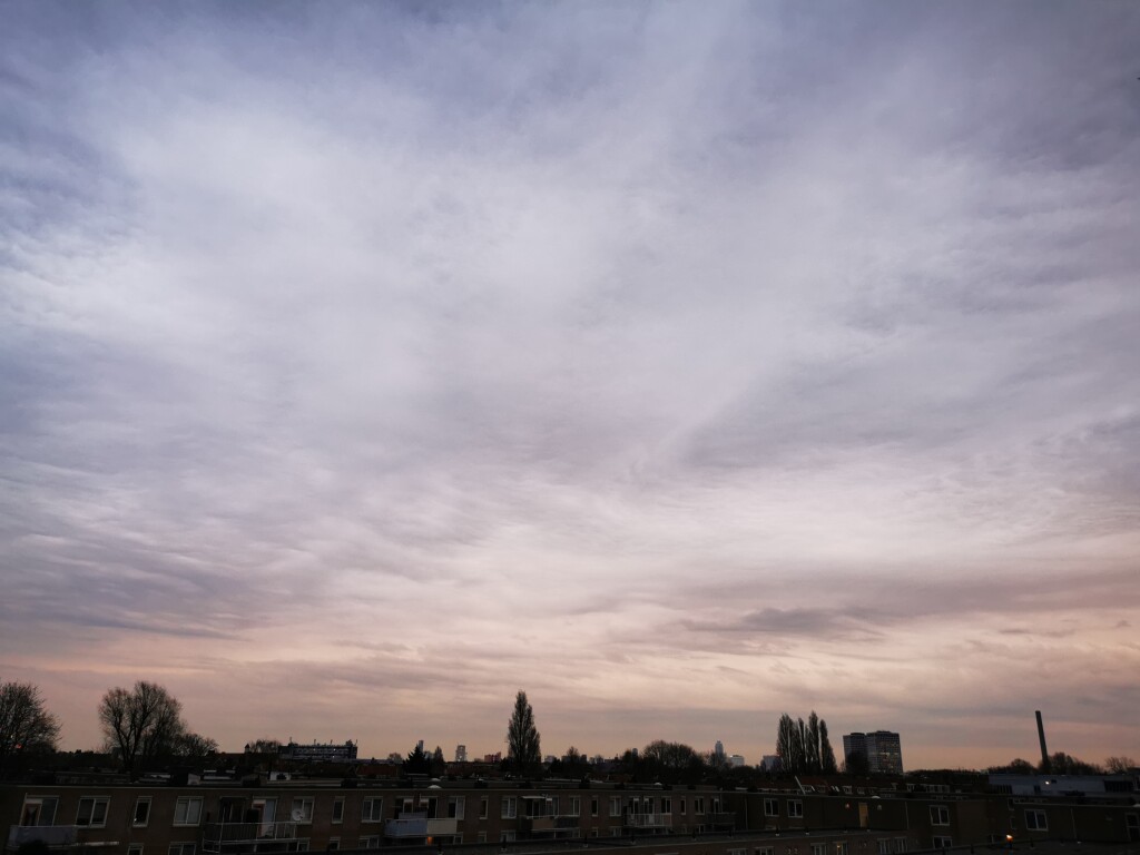Op de een of andere manier kleurde de lucht ook wat oranjebruin in de geheel bedekte altocumulus velden