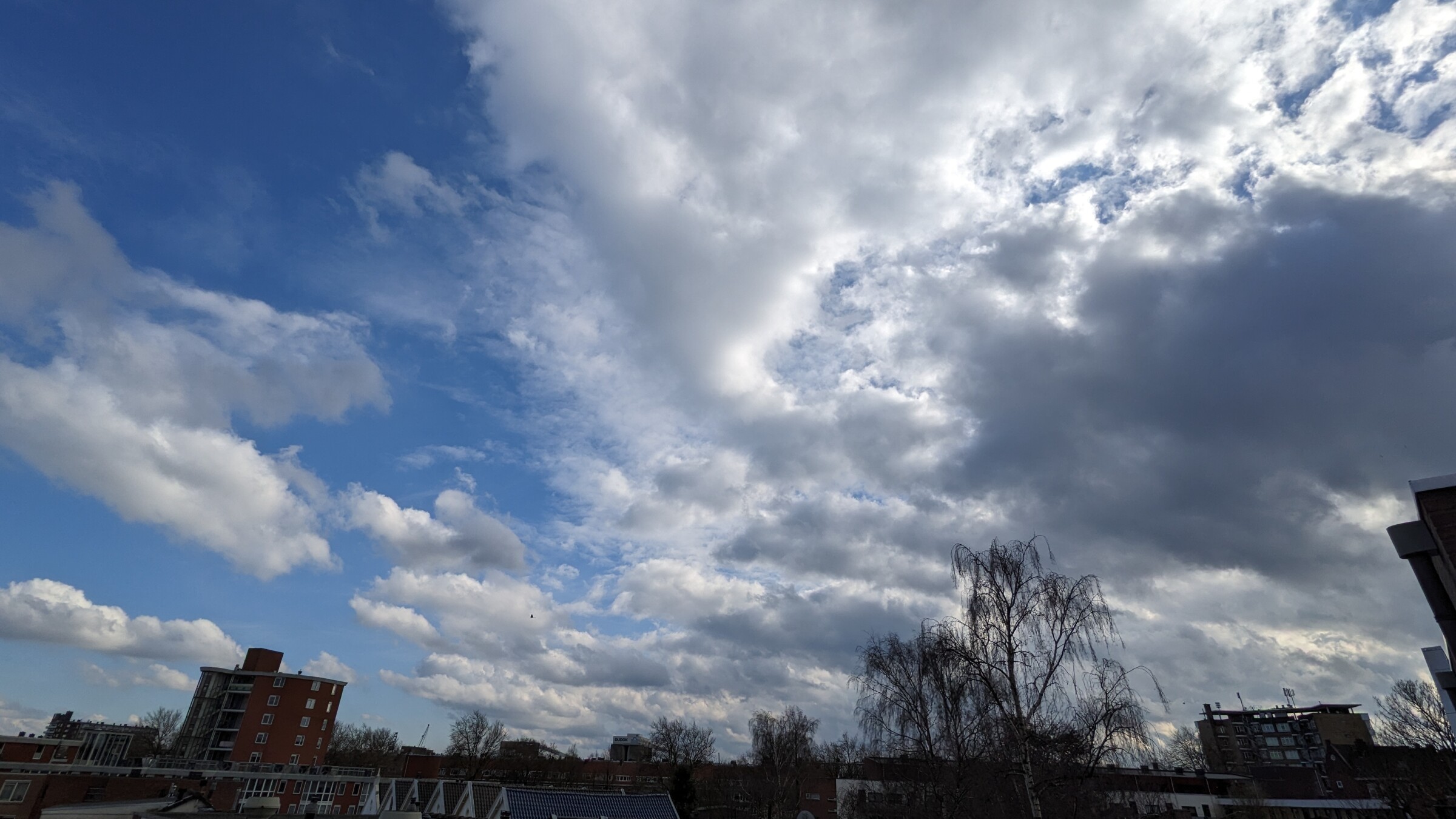 Dat uitgekadaveriseerd spul van het trogje gaf hier ongeveer 75 druppels, de zon speelt haasje over met beginnende convectieve bewolking, misschien wat krachten opbouwwn voor een eventuele chase op de fiets voor straks als het wat wordt, tact 14.5c