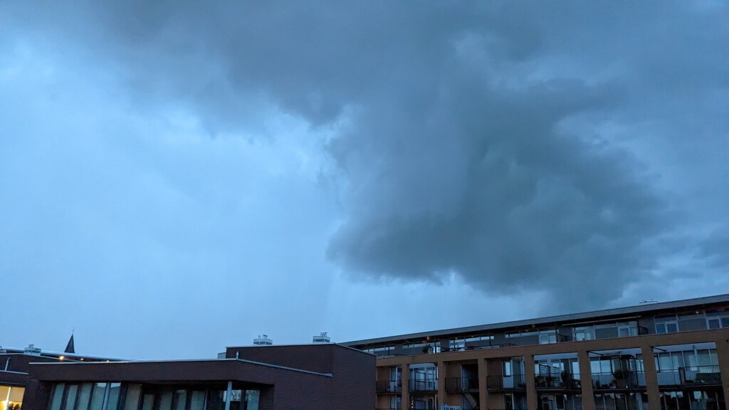Onvoorstelbaar dat de zwarte pit geen onweer gaf, je kon de ruis van hele zware neerslag langs horen trekken, er viel eventjes een paar verdwaalde hagelstenen die het formaat van knikkers had en vrij luid gepokkel liet horen en het had wat weg van een rightmover.....
