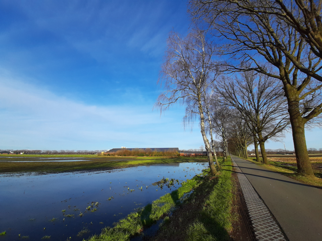 Dit jaar een véél dynamischer en afwisselender weerbeeld. De afgelopen maanden waren de regenhoeveelheden hier in de regio meestentijds vrij hoog. Februari was duidelijk droger, maar door de lage zonkracht is er dan nog weinig verdamping. In het buitengebied staan veel akkers nu deels blank en bevatten de meeste sloten zowaar weer water.