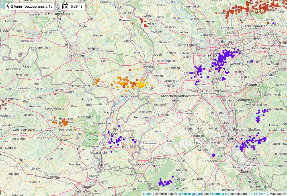 Overzicht onweer Benelux en Duitsland tot 17:15 (Blitzortung)