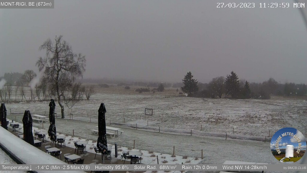 Stevige sneeuwbui nu. Tact slechts 1.6 Gr Celsius.