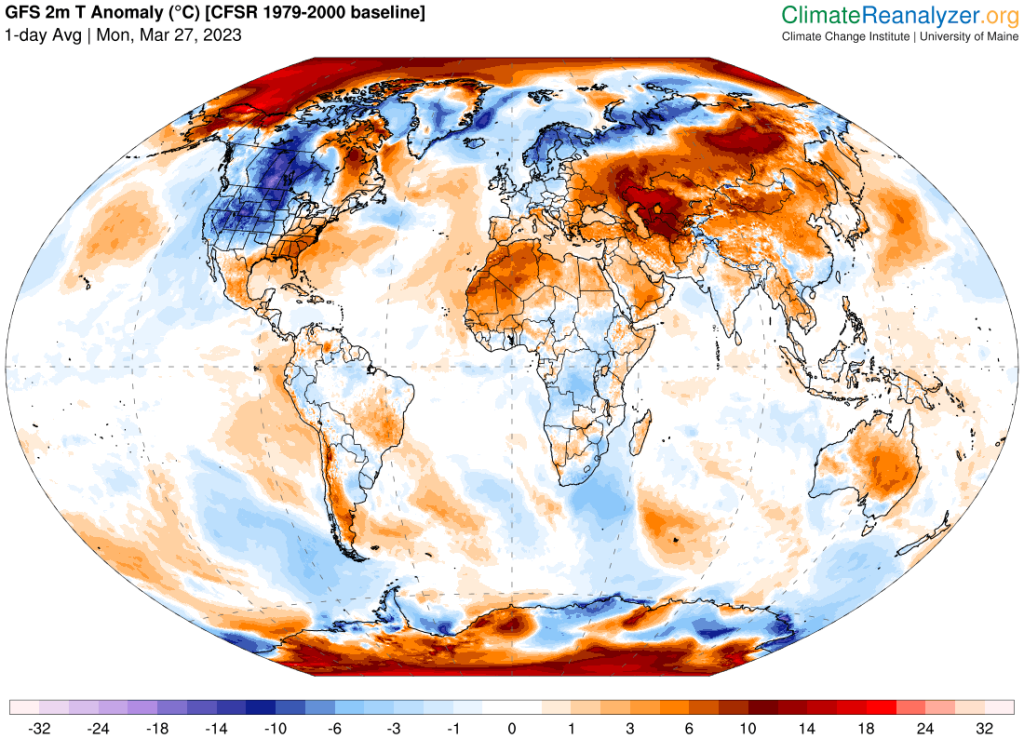 CLIMATE REANALYZER-GFS (BASE: 1979-2000) : +0.73° (over the last 33 years)
