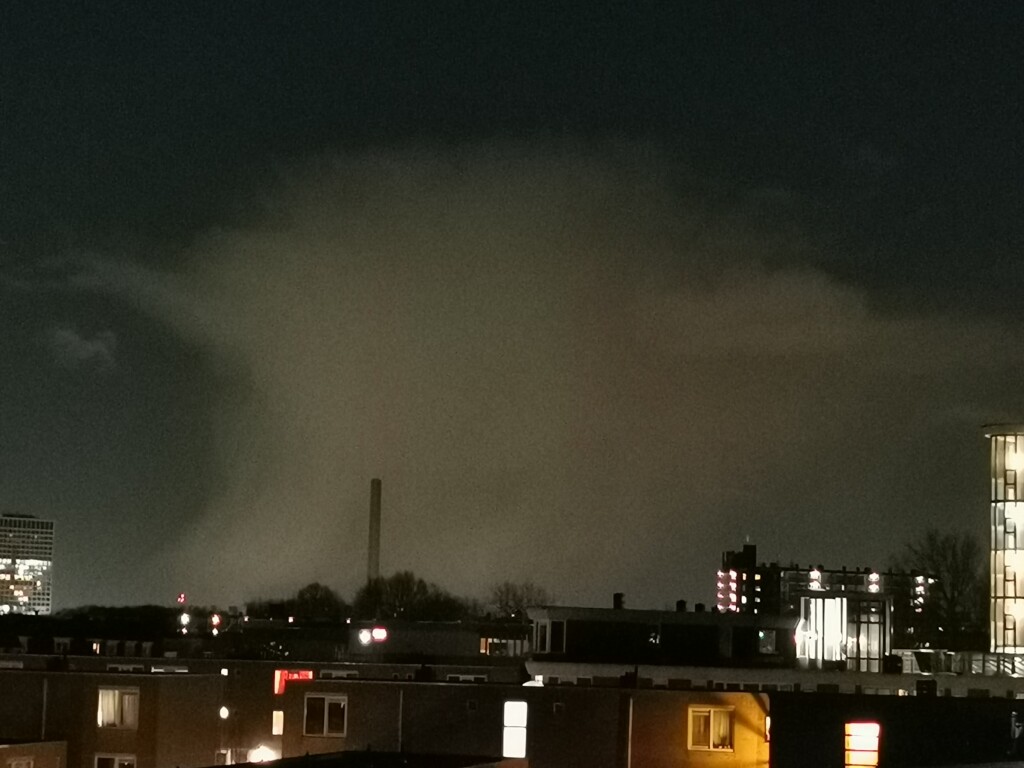 Foto van een buitje richting de Kuip van ongeveer een half uur geleden