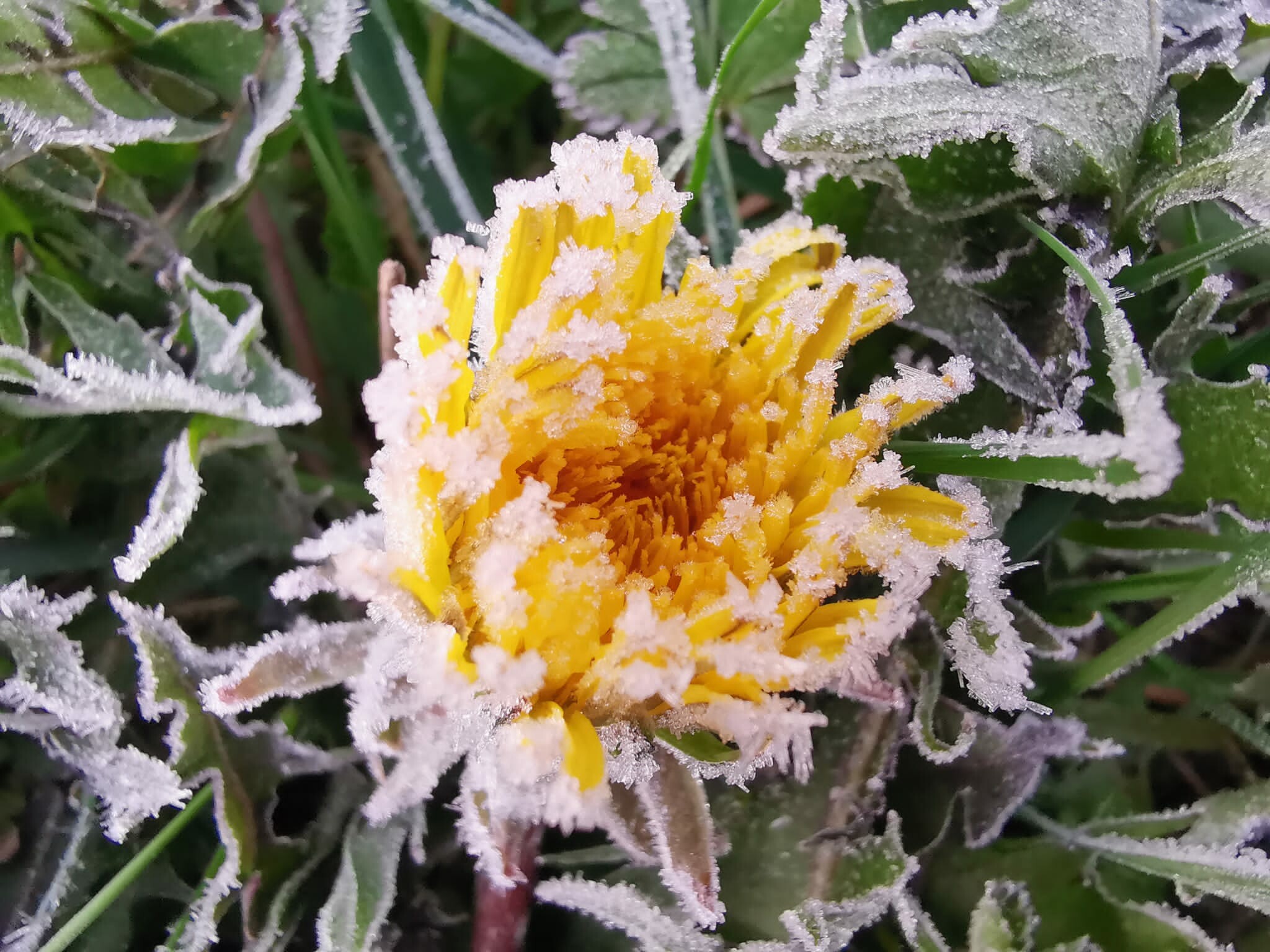 Kleuren in de vroege morgen met wat bevroren bloemetjes.