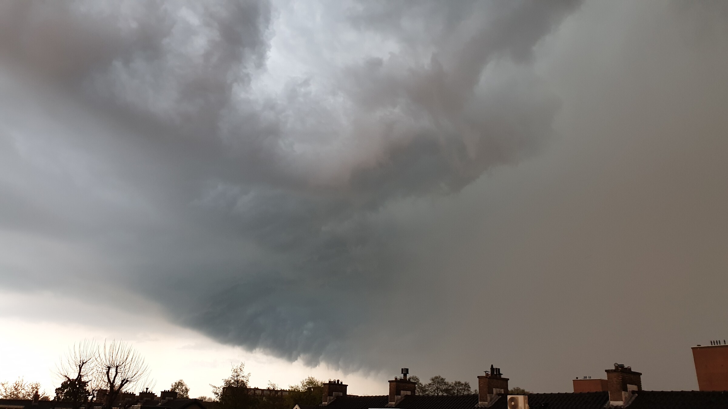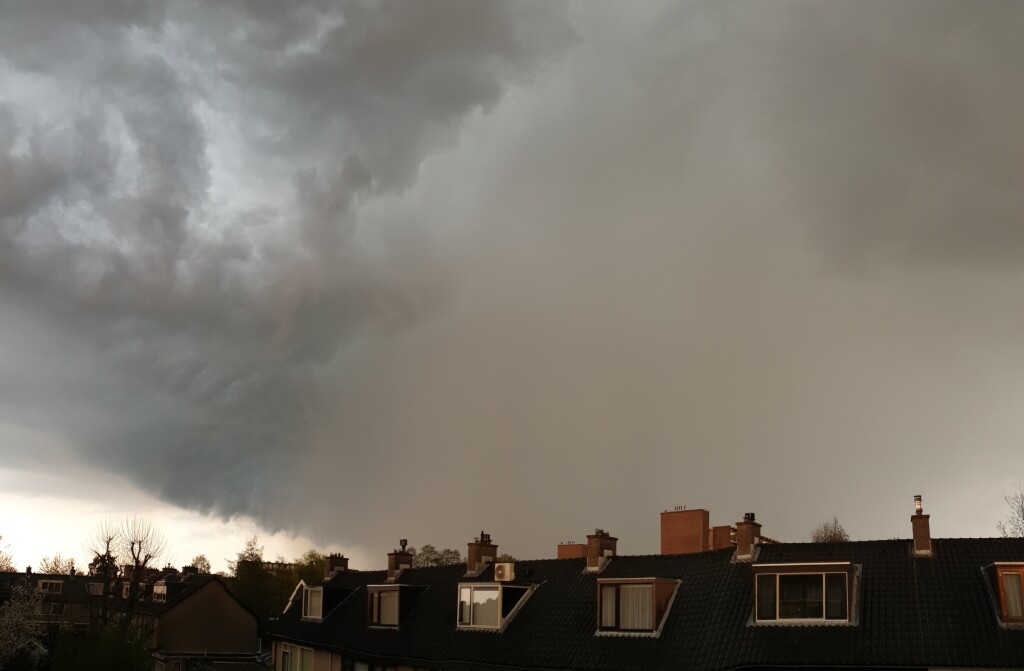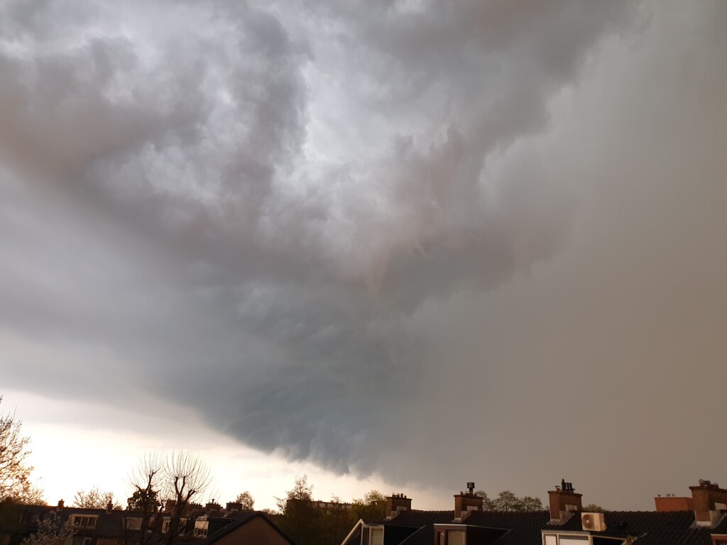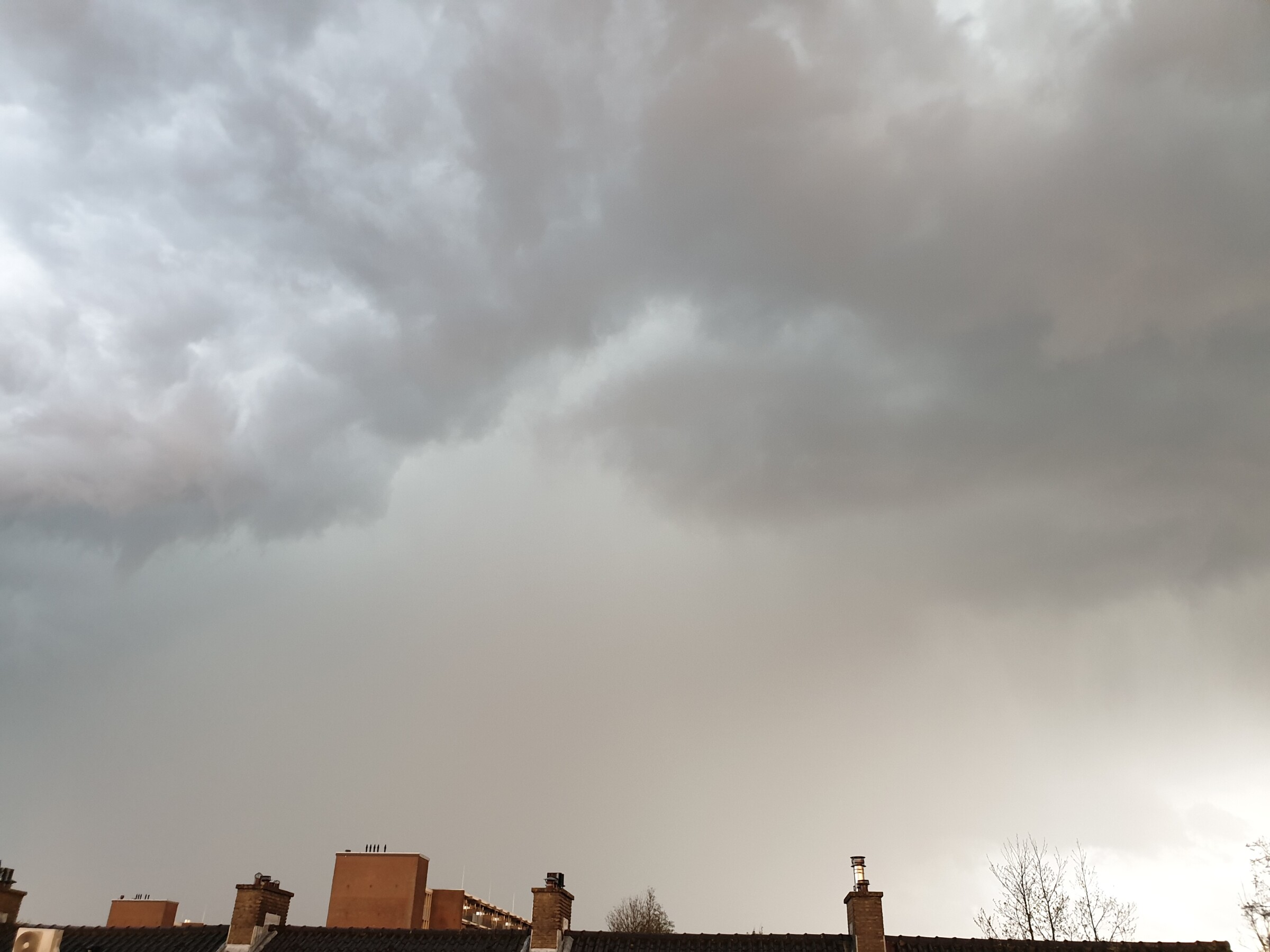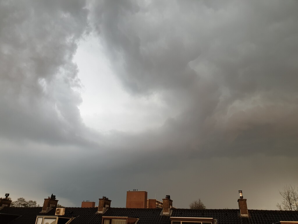 Hier rond 19:50u. ook een flinke hagelbui met onweer. Ook dreigende luchten.