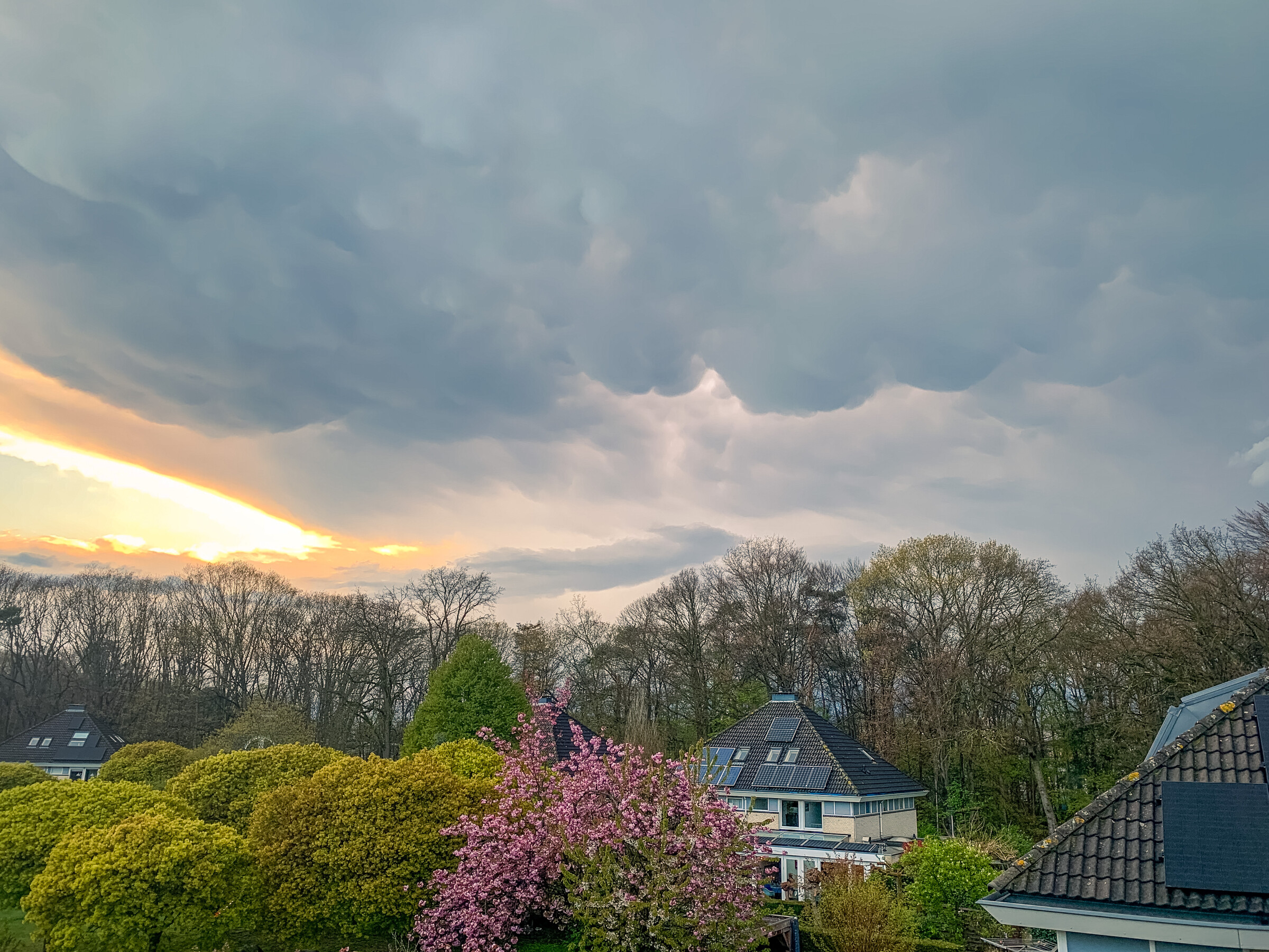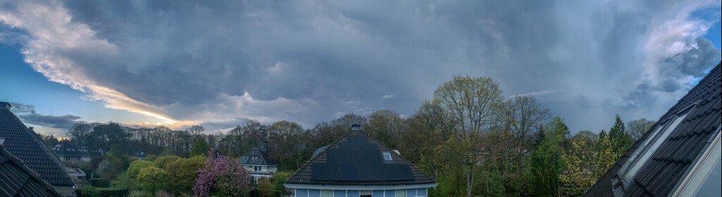 Qua regen viel het mee (2,2mm - 8,8mm sinds middernacht), maar wel flink onweer (mijn bliksemradar pikte 395 inslagen op in de omgeving, da’s meer dan alle buien vorig jaar en er zat een mooi veld mammatus op de achterzijde.