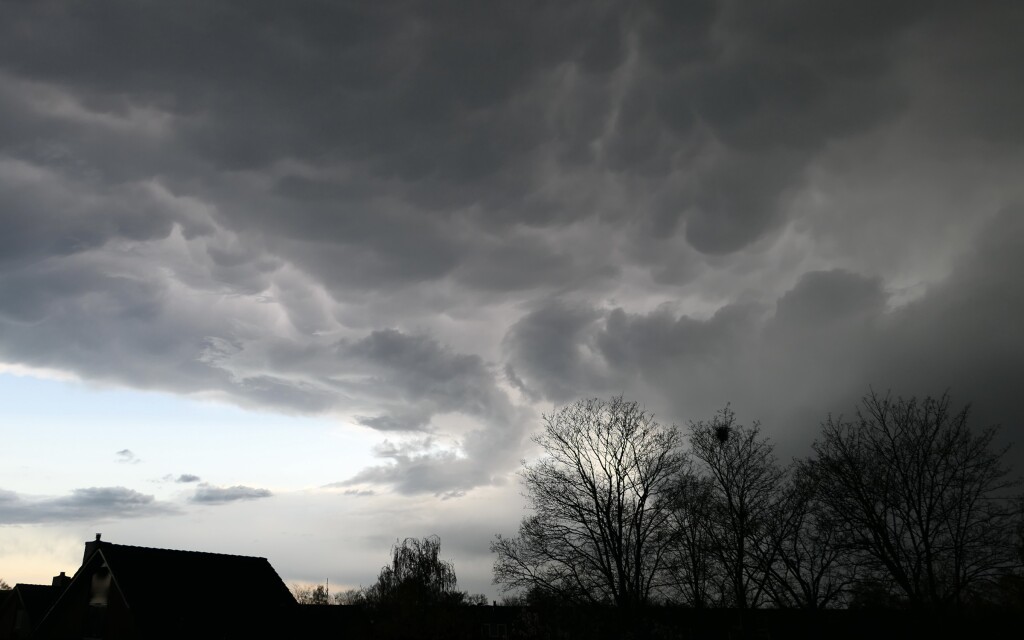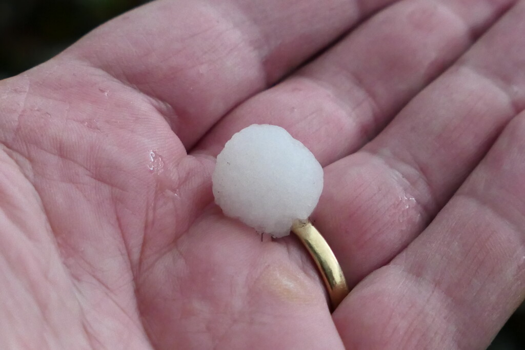 Idd geweldig mooie onweersbui met dikke hagelstenen tot ruim 1,5 cm groot en prachtige mammatus aan de achterkant.
