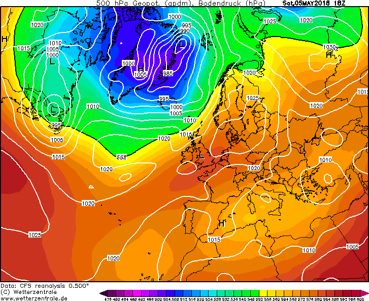 Met rode diktewaarden boven de Benelux, in plaats van het eeuwige groen. Lage druk waar het hoort, bij Groenland. Azorenuitlopers die richting Centraal Europa of Scandinavië trekken. Dit jaar niets van dat alles.