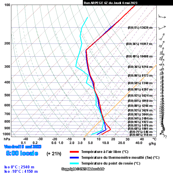 Verwachte radiosondemeting van Arpege voor het noordoosten: