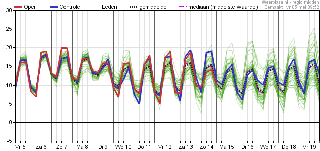 De eps blijven toch vrij volatiel deze lente. Je kan zomaar een mooi weer periode krijgen waar eerst een dal was. Ook nu weer lijkt het volgen van de mediaan soms een te 'gemiddelde' keuze te zijn , want de waarheid kan zomaar naar de warmste leden schuiven en je hebt snel 20° binnen. De eps heeft al een tijdje lange golven met dalen en heuveltjes en mij lijkt het dat de dalen worden afgevlakt op termijn naar boven en de toppen worden opgetrokken. Die soep en zo....