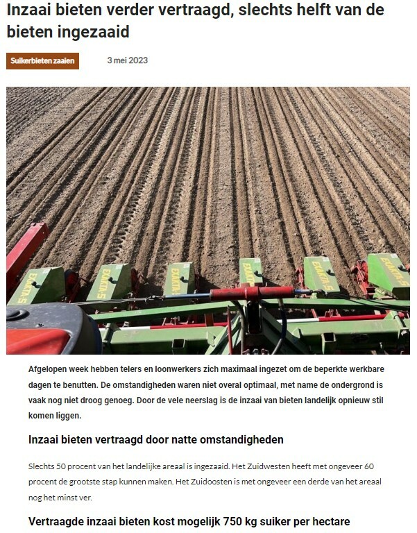 En je krijgt je antwoord. Misschien bij jou dat het er goed uitziet, zou zo maar kunnen. Maar andere gebieden zijn gewoon te nat. Precies zoals ik hierboven ook schreef. Het was gisteren te zien in het RTL Nieuws en ook gewoon te vinden op Intenet.