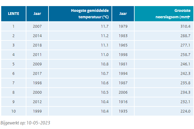 Maar zonder gekheid. Dit voorjaar al bijna in de top10 natste. Tot vandaag 209 mm in De Bilt: