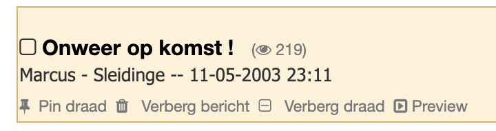 Gelukkig niet al mijn forumnamen meegerekend, ik heb een tijdje gepost onder de naam "Marcus - Sleidinge". Ik zie mijn eerste bericht staan op 11 mei.