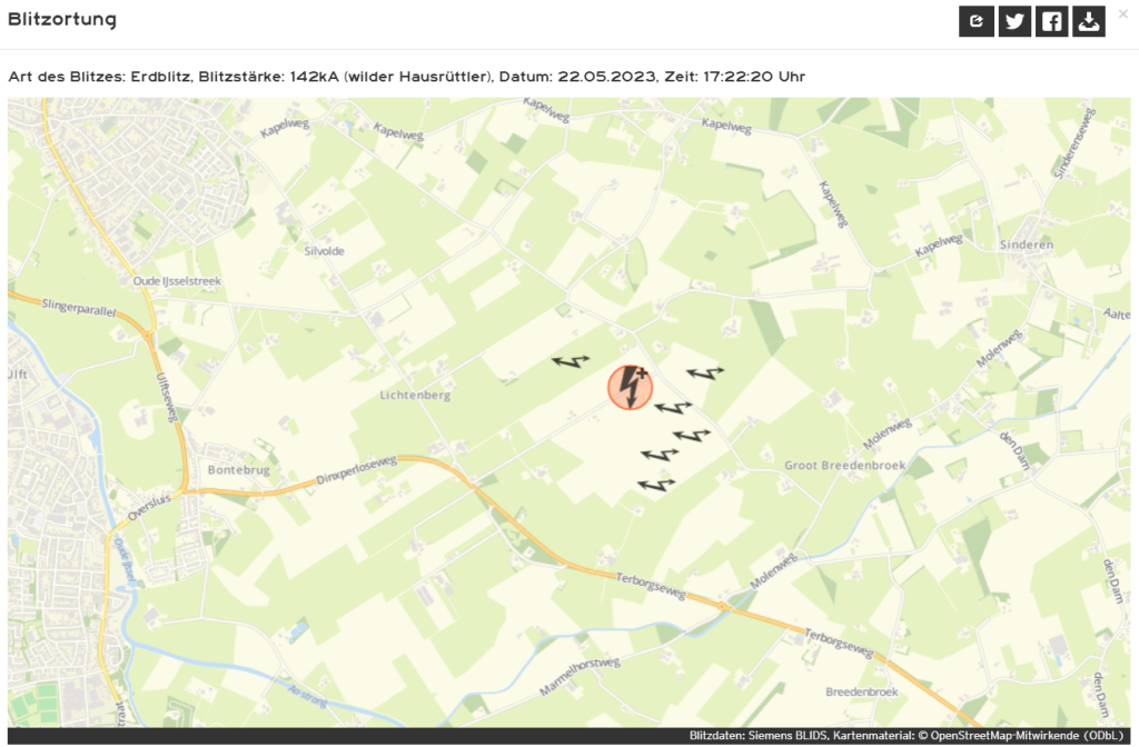 Re: Blikseminslag in twee bomen in Silvolde afgelopen maandag