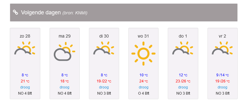 Althans, volgens de grafische weergave bovenaan de startpagina van weerwoord. Hiermee is al wel eens vaker iets op onduidelijke wijze fout gegaan. Wat zou er nu aan de hand zijn? Alleen op maandag hebben de wolken een basis, maar op de andere dagen met zo te zien hetzelfde symbool valt het onderste deel van de afbeelding weg. Hoe kan dat nu?