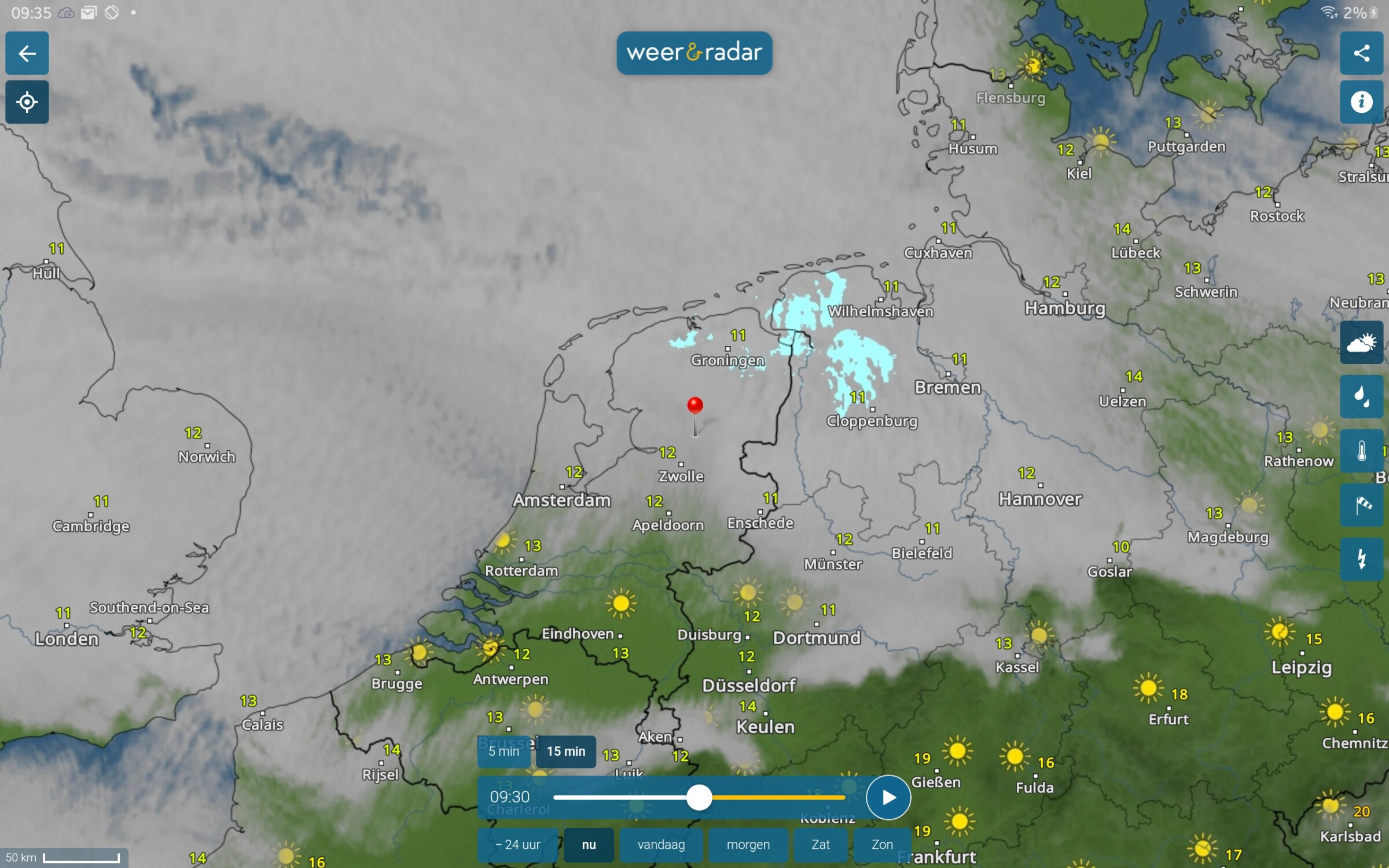 de hele dag zo blijven. Jas, lange broek, dikke trui.....helaas, wachten op morgen. Deze dag maar even doorkomen. Zelfs regen op de kaart....