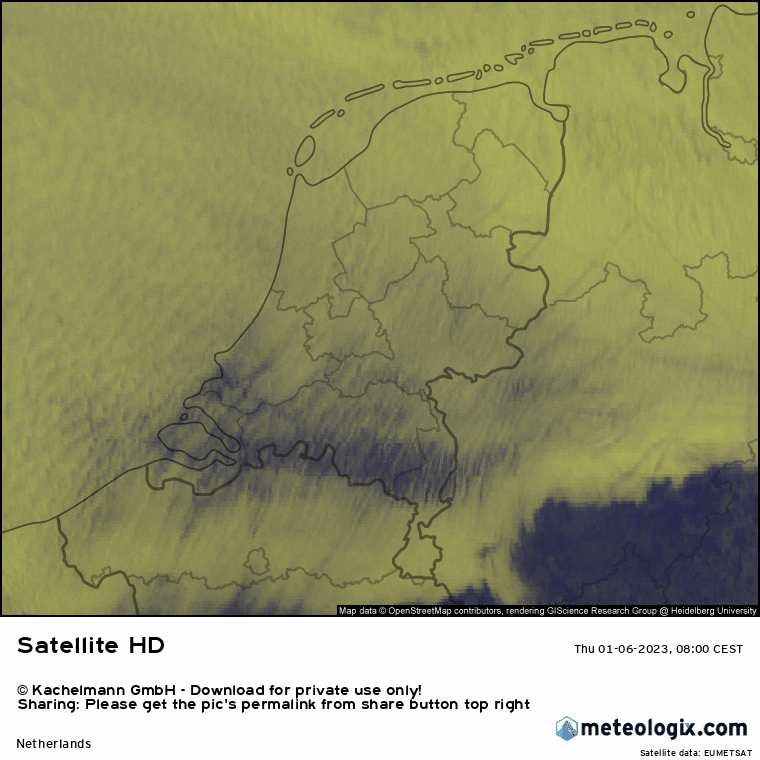 Van het zuiden uit lost de bewolking toch vrij gemakkelijk op. Hier in Wageningen inmiddels bijna strakblauw met richting het noorden nog wat wolkenvelden.