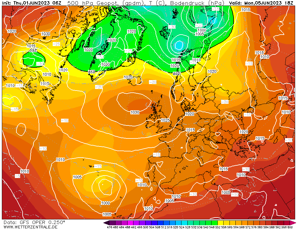 Waar de temperaturen de afgelopen periode vrij gematigd waren met af en toe een warme uitschieter, laat GFS het nu toch echt structureel warmer worden. Oorzaak is een meer naar het (noord)oosten draaiende wind waardoor in een groot deel van de Benelux de temperaturen flink kunnen oplopen. Alleen het uiterste noorden (met name het Waddengebied) zouden eventueel nog gevoelig kunnen blijven voor lagere temperaturen.