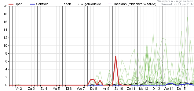 40% kans op >10 mm neerslag de komende 15 dagen in het zuidoosten.