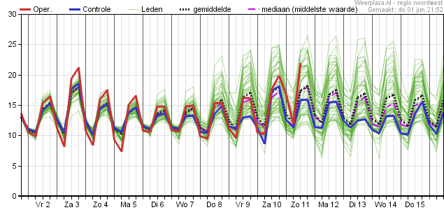 Ronduit kil juniweer de gehele periode. Meer dan 15 gr wordt het niet. Alleen zaterdag kan het 20 graden worden.