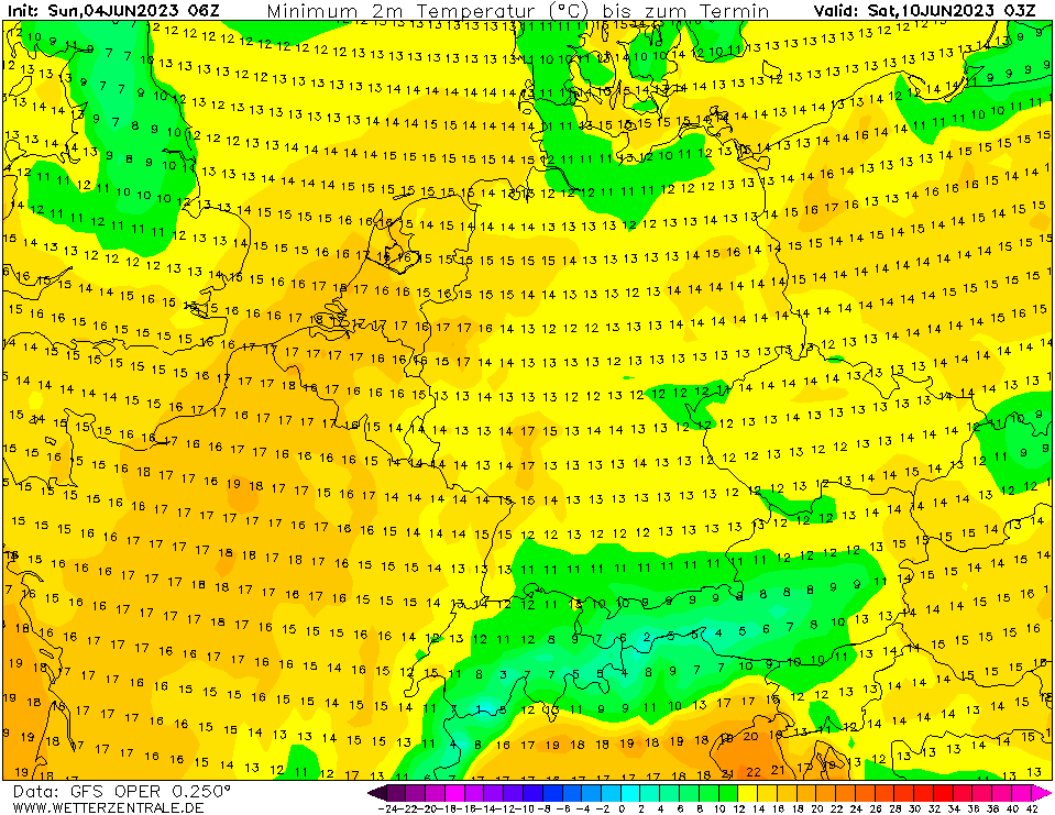 Met later ook kans op lokale of regionale tropennachten met een temperatuur van rond de 20 graden.