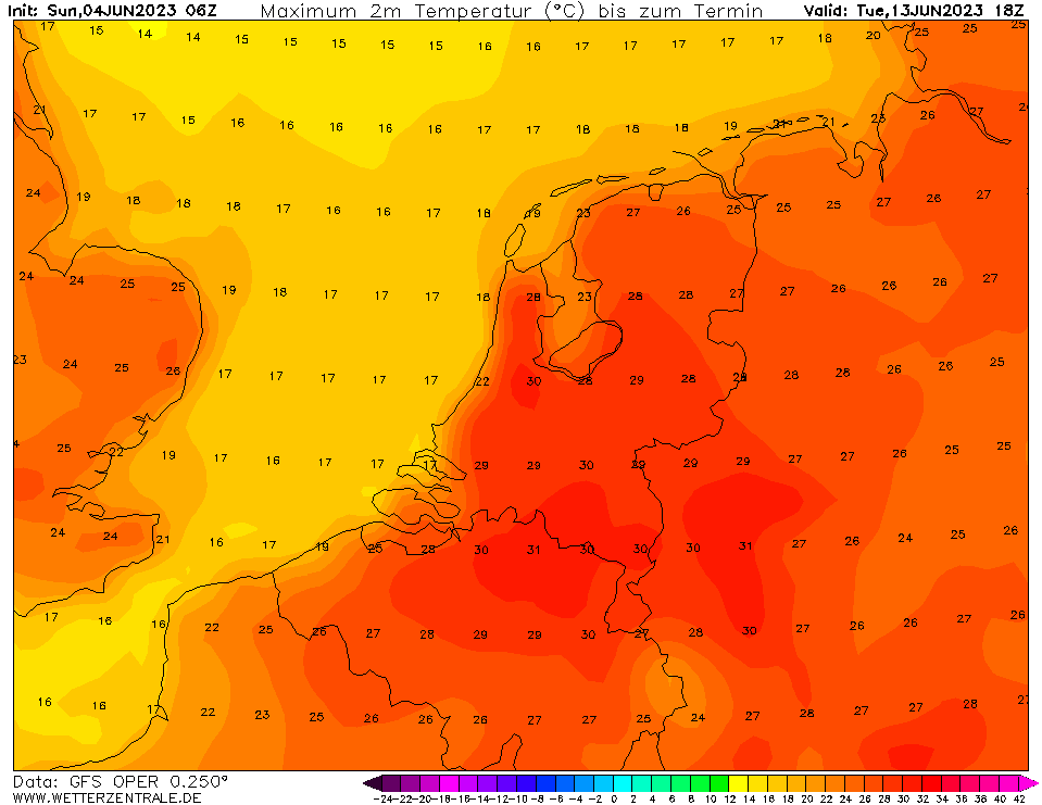 Re: GFS (06z): Benelux warmste én droogste plek van Europa?