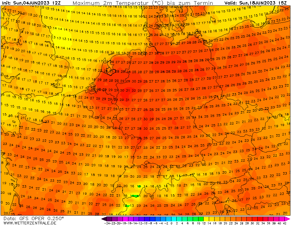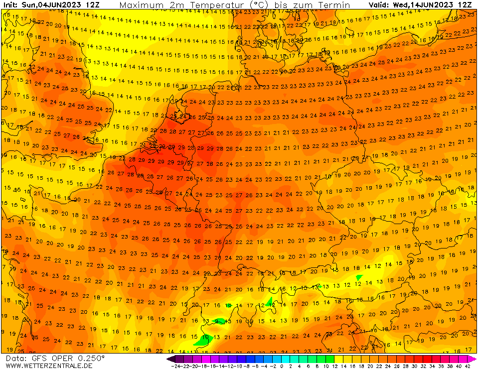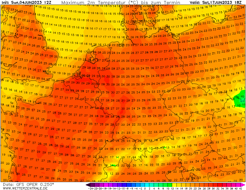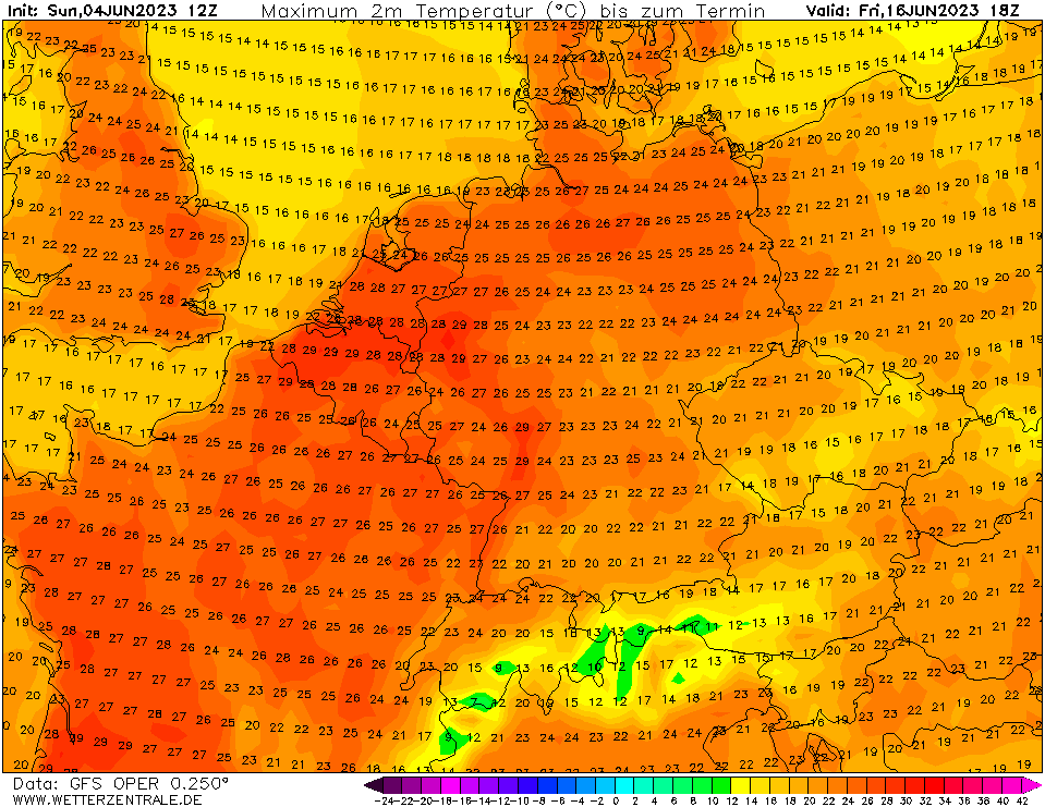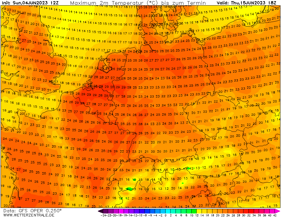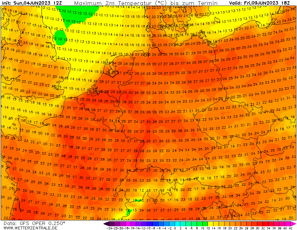 12 dagen op rij temperaturen van bijna 30°C landinwaarts (rekening houdend met een eventuele correctie).